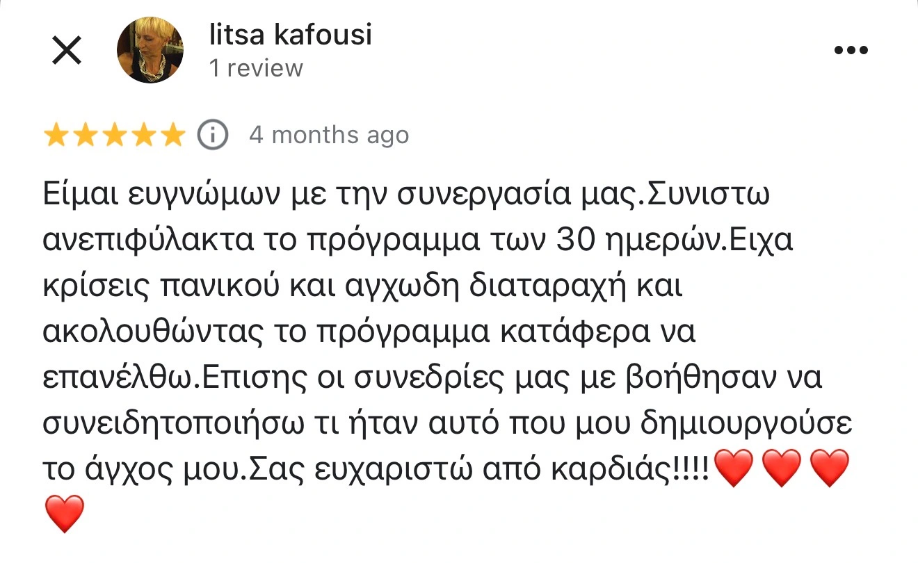 δήλωσαν σημαντική μείωση άγχους μέσα στις πρώτες δύο εβδομάδες.